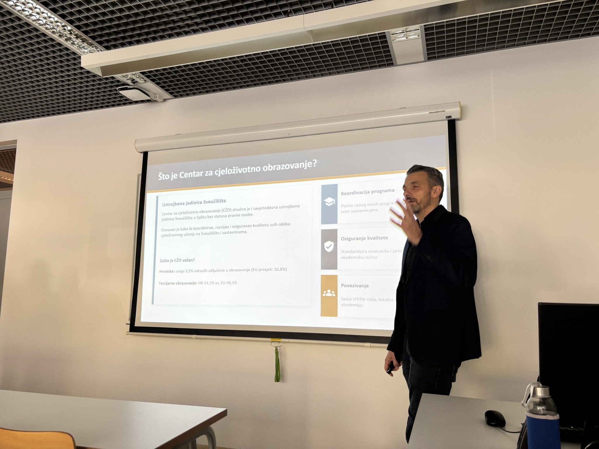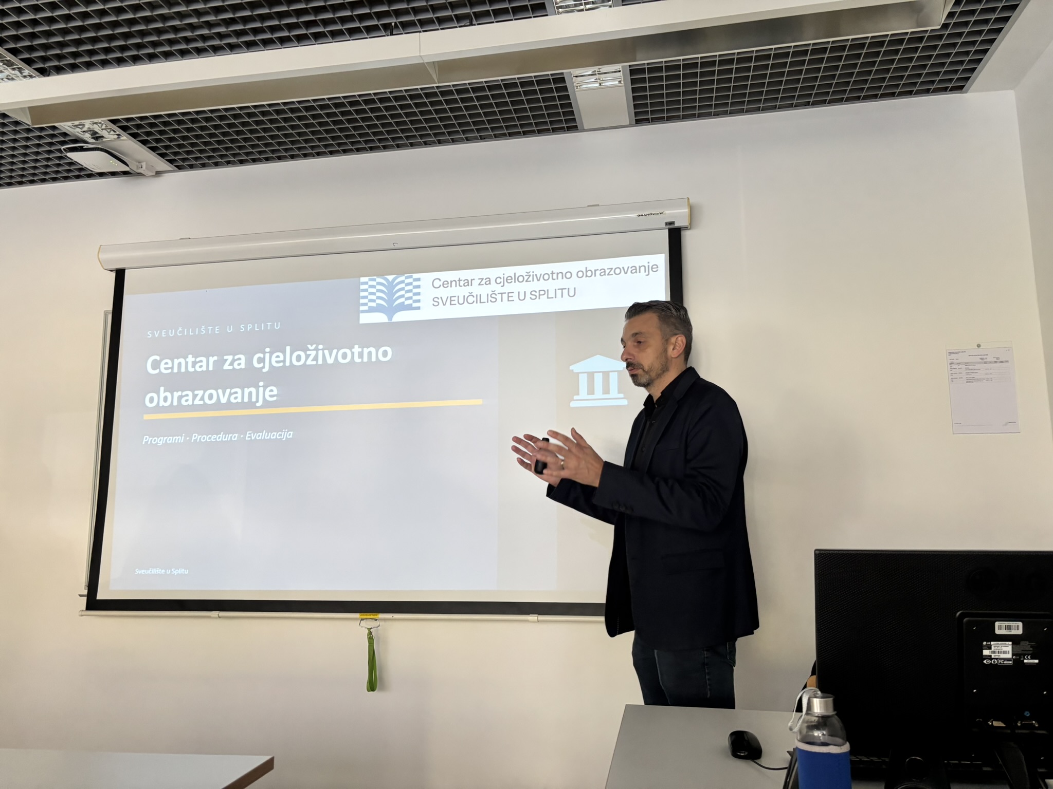 Voditelj Centra za cjeloživotno obrazovanje Sveučilišta u Splitu, izv. prof. dr. sc. Vladimir Pleština, održao je predavanje na Fakultetu znanosti o moru u Splitu posvećeno sustavu cjeloživotnog obrazovanja i mogućnostima koje on pruža nastavnicima, istraživačima i osoblju Sveučilišta.